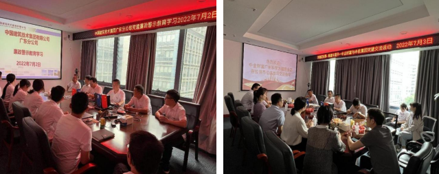 聯(lián)合共建交流活動(dòng)的開展,進(jìn)一步增強(qiáng)了黨組織的凝聚力和戰(zhàn)斗力,更加堅(jiān)定了黨員們愛黨、信黨、跟黨走的理想信念,激勵(lì)了黨員們以昂揚(yáng)的精神風(fēng)貌和飽滿的工作熱情,立足實(shí)踐,忠誠擔(dān)當(dāng),為集團(tuán)公司高質(zhì)量發(fā)展貢獻(xiàn)力量!下午,廣東分公司黨支部組織開展廉政警示教育專題黨課,黨員們現(xiàn)場(chǎng)觀看廉政教育宣傳記錄片,圍繞廉潔教育主題進(jìn)行座談交流,大家紛紛表示,要以案為鑒,不斷加強(qiáng)黨性修養(yǎng),堅(jiān)定理想信念,堅(jiān)守法律底線,筑牢廉政防線。