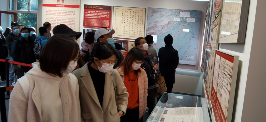 “毛澤東同志在香山”館,展示了“進京趕考”、“進駐香山”、“繼續(xù)指揮解放全中國”、“新中國籌建”等雙清別墅中發(fā)生的各大事件。黨員們俯身仔細查看著一張張珍貴的照片和文件資料,駐足觀看開國大典的影片片段,回顧當年中共中央從西柏坡遷至香山后,在此指揮解放全中國、籌建新中國的點滴細節(jié),汲取砥礪前行的精神力量。