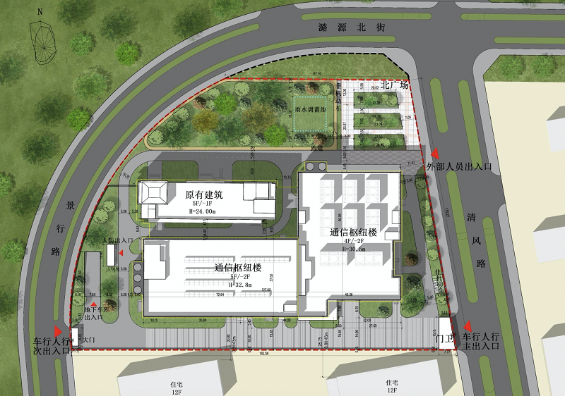 項目在保留原有通信樓基礎上,在南側(cè)及東側(cè)新建一座L型通信樞紐樓。項目建成后,可以滿足國際出口設備和互聯(lián)網(wǎng)安全設備擴容需求,同時打造國際一流的物聯(lián)網(wǎng)、大數(shù)據(jù)分析、云計算及各類智慧應用基地,并為中國電信與中國移動提供機房,充分滿足城市副中心辦公區(qū)及整個城市副中心區(qū)域未來多樣化的智慧通信需求以及網(wǎng)絡安全需求,為城市副中心提供更優(yōu)質(zhì)、更便捷、更安全的全方位通信服務。