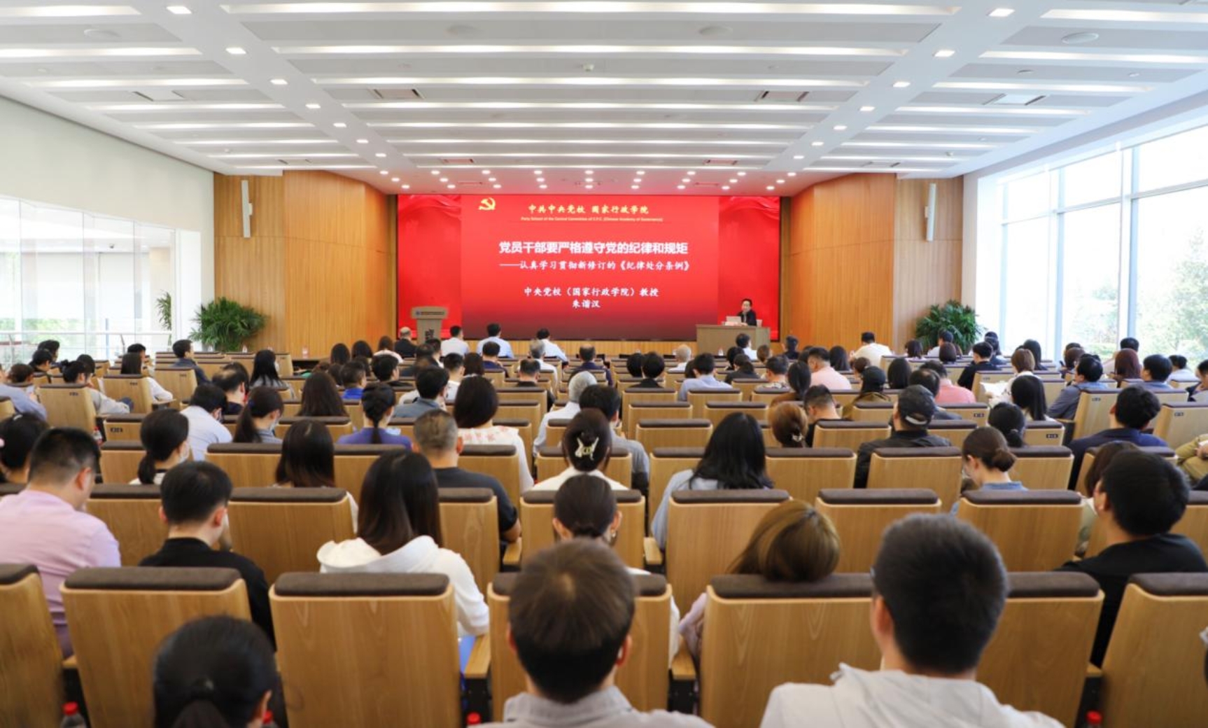 為深入學(xué)習(xí)貫徹新修訂的《中國(guó)共產(chǎn)黨紀(jì)律處分條例》,進(jìn)一步增強(qiáng)全體黨員干部的紀(jì)律意識(shí)和規(guī)矩意識(shí),推動(dòng)黨紀(jì)學(xué)習(xí)教育走深走實(shí),5月11日,中國(guó)建技邀請(qǐng)中央黨校(國(guó)家行政學(xué)院)教授朱諧漢作《黨員干部要嚴(yán)格遵守黨的紀(jì)律和規(guī)矩》黨紀(jì)學(xué)習(xí)教育專題講座。中國(guó)建技在京領(lǐng)導(dǎo)班子成員出席講座,黨委委員、總會(huì)計(jì)師劉羊子主持講座。