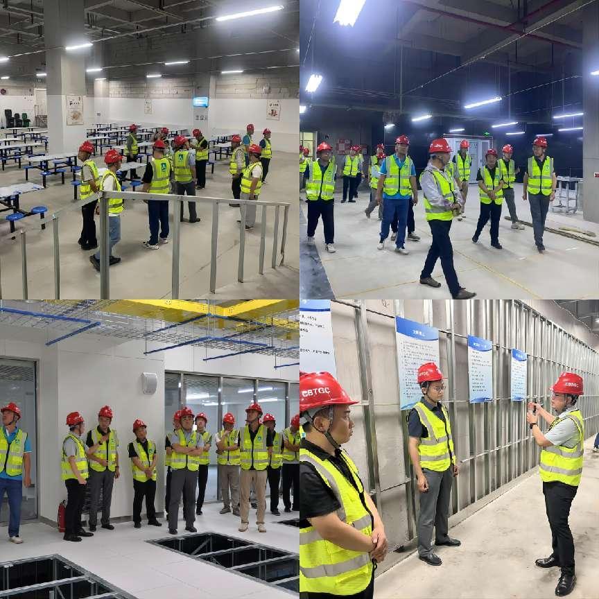 觀摩人員深入項目現(xiàn)場,實地參觀了現(xiàn)場標準化臨建、封閉式加工區(qū)、材料堆放區(qū)、安全講評臺、施工作業(yè)區(qū)、員工就餐區(qū)、辦公區(qū)、智慧化工地、高密機房樣板區(qū)等工地設施,并給予一致好評。