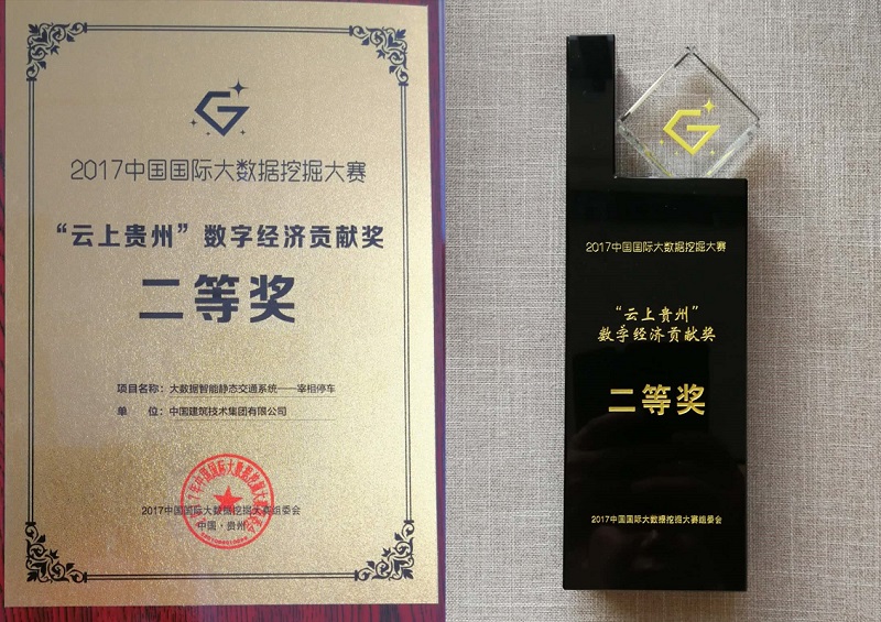 2017年12月28日,2017中國(guó)國(guó)際大數(shù)據(jù)挖掘大賽在貴州省貴陽(yáng)市落幕,我公司基于大數(shù)據(jù)云平臺(tái)的智能停車項(xiàng)目--宰相停車項(xiàng)目,獲得“云上貴州-數(shù)字經(jīng)濟(jì)貢獻(xiàn)獎(jiǎng)”二等獎(jiǎng)。