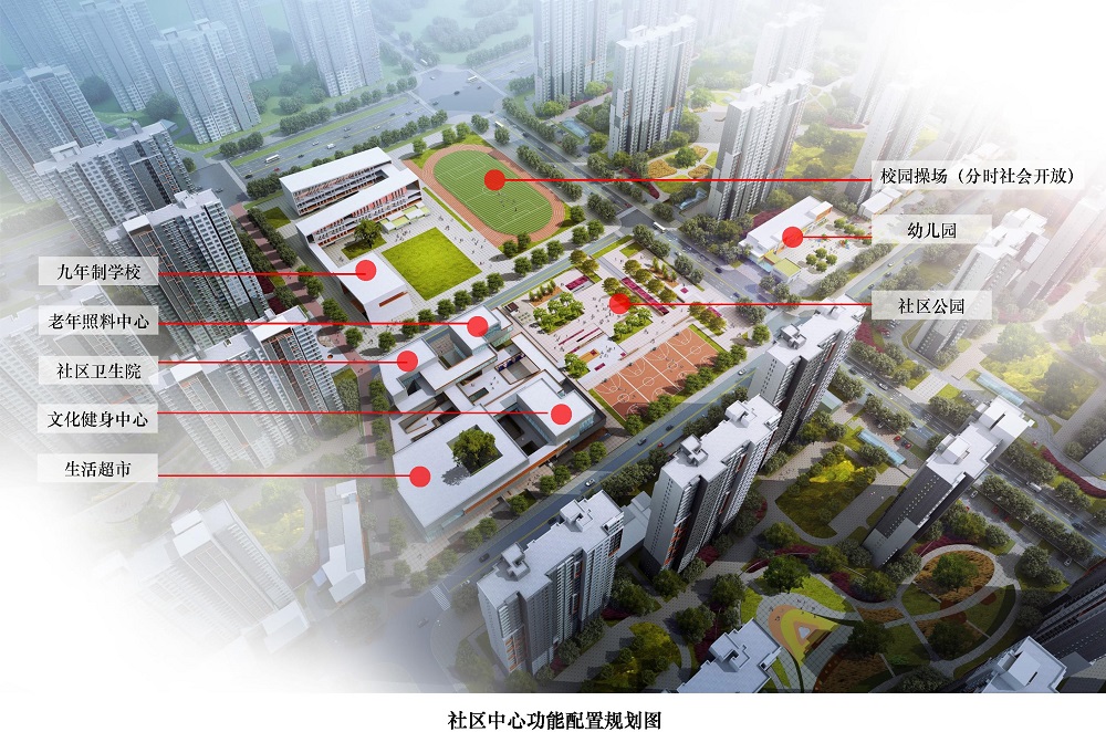 將生活超市、文化娛樂(lè)、全民健身、社區(qū)醫(yī)療、老年照料、九年制學(xué)校、社區(qū)公園、幼兒園和管理服務(wù)等社區(qū)類級(jí)的公共設(shè)施相對(duì)集中或鄰近布局,實(shí)現(xiàn)了便利化使用和規(guī)?;?jīng)營(yíng)的雙重目標(biāo)。規(guī)劃同時(shí)兼顧設(shè)施抗擾和共享平衡的問(wèn)題:醫(yī)療、養(yǎng)老相互結(jié)合,教學(xué)設(shè)施相對(duì)獨(dú)立,學(xué)校操場(chǎng)臨近社區(qū)公園和文體中心布置,方便對(duì)外開(kāi)放和聯(lián)動(dòng)使用。