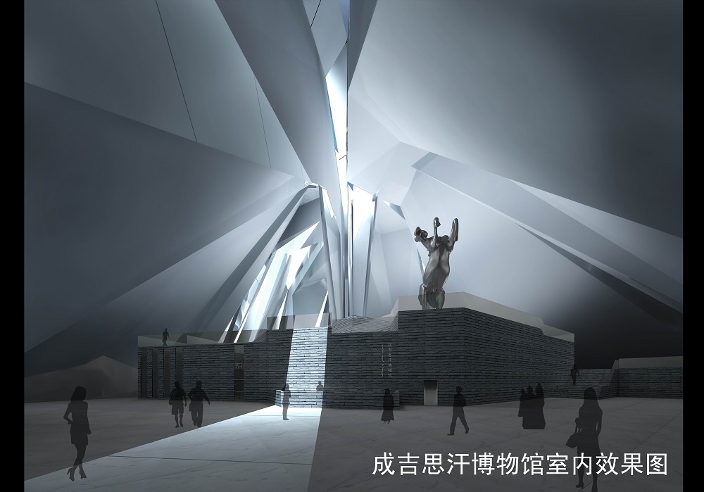 成吉思汗,是自然的化身,是山一樣的豐碑,成吉思汗博物館不僅僅是一棟“建筑”,博物館的形態(tài)本身就是山一般的神秘和沉靜,山,是完結的形態(tài),融合和超越周遍的任何形態(tài)。