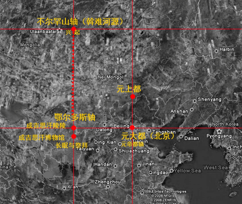 整體建筑的文化意義在于以平面形態(tài)和布局,體現(xiàn)成吉思汗開創(chuàng)的歐亞大陸版圖,并以鄂爾多斯為中心,向十三個方向發(fā)散的十三條建筑軸線代表十三世紀以及成吉思汗創(chuàng)建的十三個世界之最,象征著成吉思汗對于整個時代帶來的震撼。