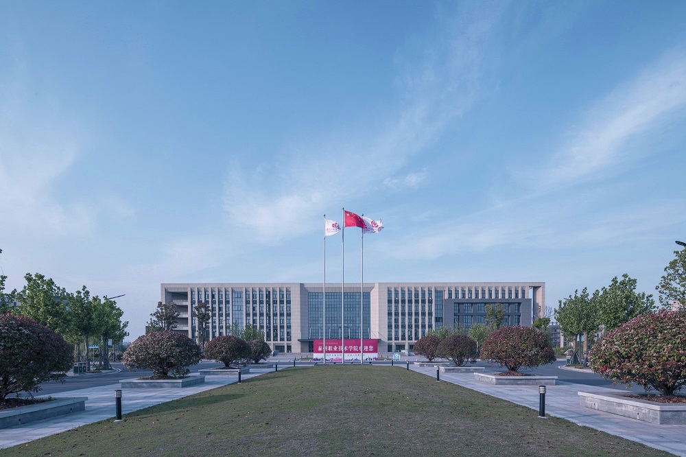 本項目為泰州職業(yè)技術學院中國醫(yī)藥城新校區(qū)規(guī)劃與建筑方案。選址于泰州中國醫(yī)藥城境內。規(guī)劃用地面積約1061 畝。設計規(guī)劃在校學生10000人,教職員工670 余人。實際用地面積約54萬平方米,一期設計總建筑面積約27.98萬平方米。實際本單位完成施工圖涵蓋建筑面積約16.54萬平方米。