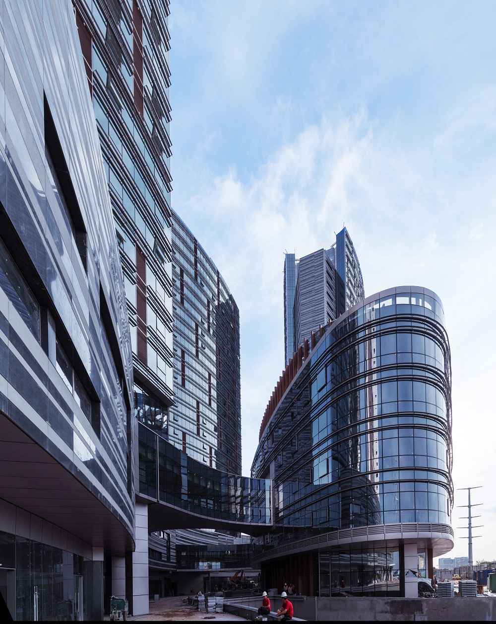 濱河商務(wù)中心總建設(shè)用地面積約28261平方米, 總建筑面積約20萬平方米,其中地上部分建筑面積約14萬平方米,包括一棟138米超高層寫字樓、三棟100米高層公寓及辦公樓以及裙房商業(yè)、旗艦店與酒店等商業(yè)服務(wù)設(shè)施;地下部分建筑面積約6萬平方米,主要包括下沉商街、車庫與設(shè)備機房等輔助設(shè)施。